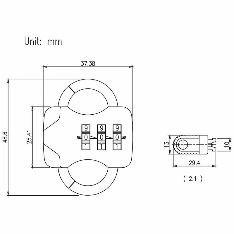 C929 zinc alloy lock body, surface painted, 3 number wheels, can have 1000 password combinations.